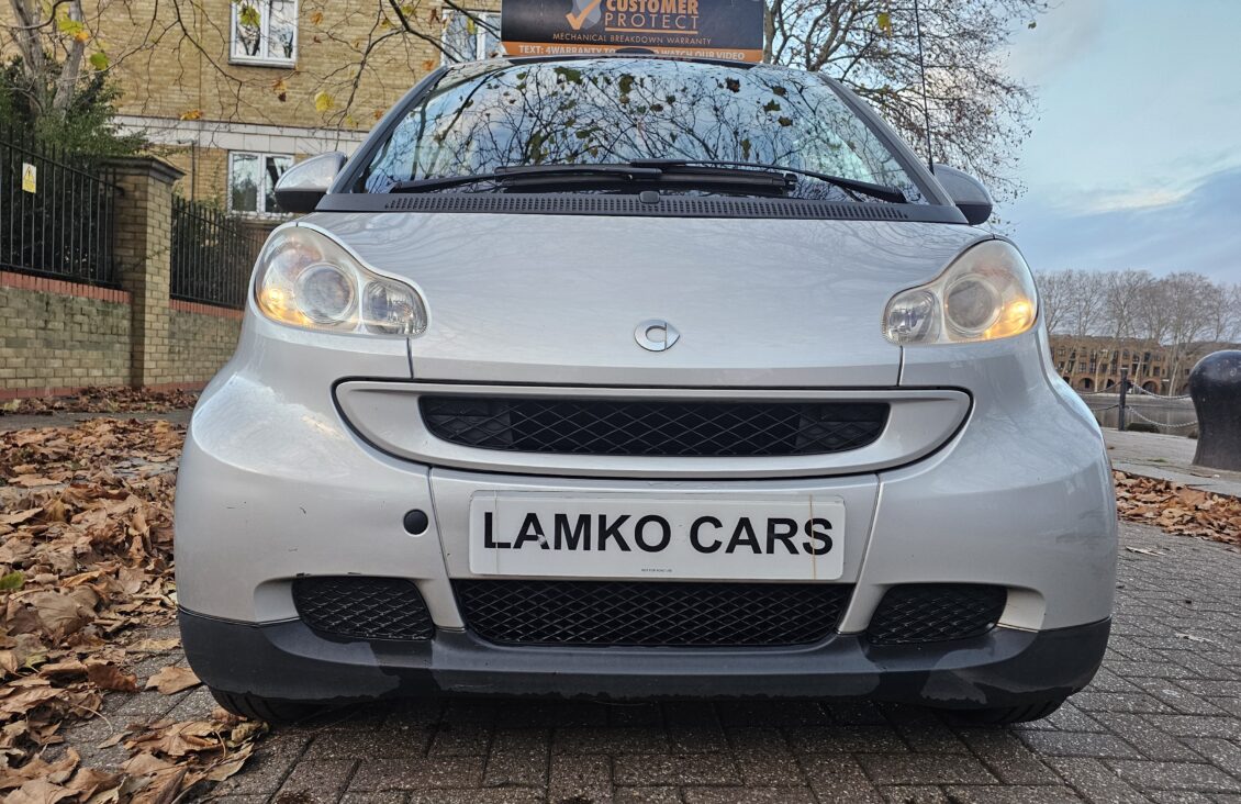 This smart fortwo comes with 6 months warranty and 2 main dealer services reciepts and the rest from local garages. The last service was carried out at 51000 miles in August 2025. Long Mot until November 2026, Road tax is only 21 pound per year. Exempt from Ulez charge, passion model which is top of the base range,(automatic+ tiptronic) with this model you have the option of changing gears or you can simply press a button to go into automatic mode, front and rear demister, electronic stability control, remote central locking, ABS breaks, Analogue clock and additional rev counter. compartment, good boot space, rain sensor, automatic hill start assist, traction control, Immobiliser, (retractable parcel shelf) Also rear net space in the back, smooth drive, interior and exterior in very good condition,Low insurance group. perfect car for new driver’s to insure as it’s in the low insurance group. Any inspection welcome, CARD PAYMENT ACCEPTED, This car is great for driving around the city. Also suitable for long motorway journeys. It is extremely economical. Approximately 40 to fill the tank. This can get you around 300 miles with a full tank of fuel. It’s also easy to park. We can arrange delivery within the UK. PART EXCHANGE CARS WELCOME. please visit www.lamkocars.co.uk to see the range of smart cars we have in stock. At lamko cars you can be sure to get great customer service. Don’t just take our word for it, check out our 5 star rated reviews.